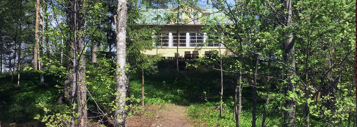 Päärakennukselta johtava polku tuo puhtaan Joutjärven rantaan.